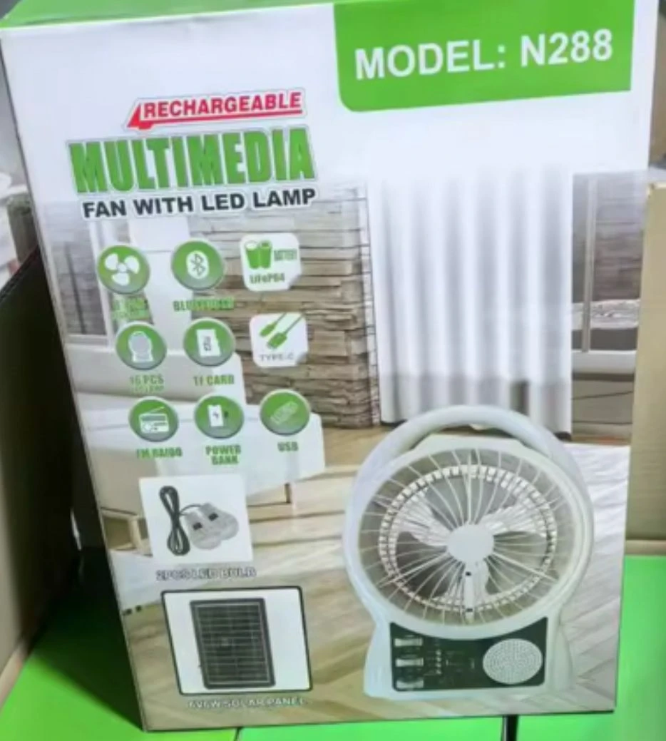 Stay cool and powered up anywhere with this multimedia solar rechargeable fan with LED lamp designed for Nigerian homes, offices, and outdoor use. Whether you're dealing with power outages or need a reliable cooling solution, this solar rechargeable fan delivers consistent airflow and bright lighting when you need it most.