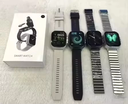 A budget-friendly smartwatch with built-in Bluetooth earbuds. Features a 2.01” touchscreen, heart rate & sleep monitoring, step tracking, call/message alerts, and IP67 water resistance. Includes music control, calculator, mini games, and ~15-day battery life. Good for casual use, but not ideal for long-term durability or health accuracy