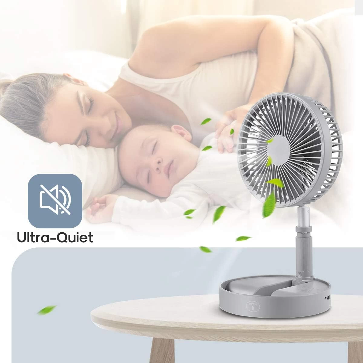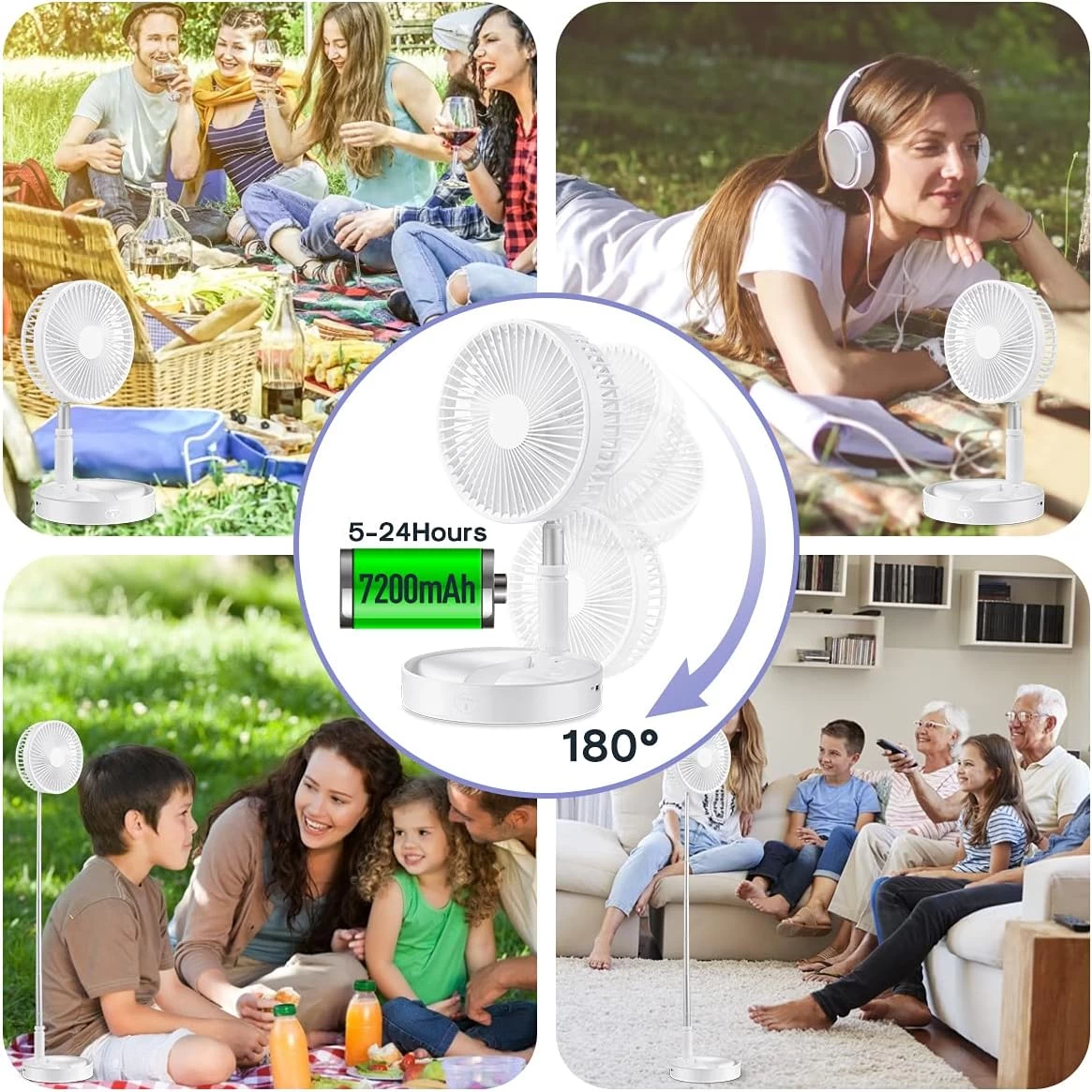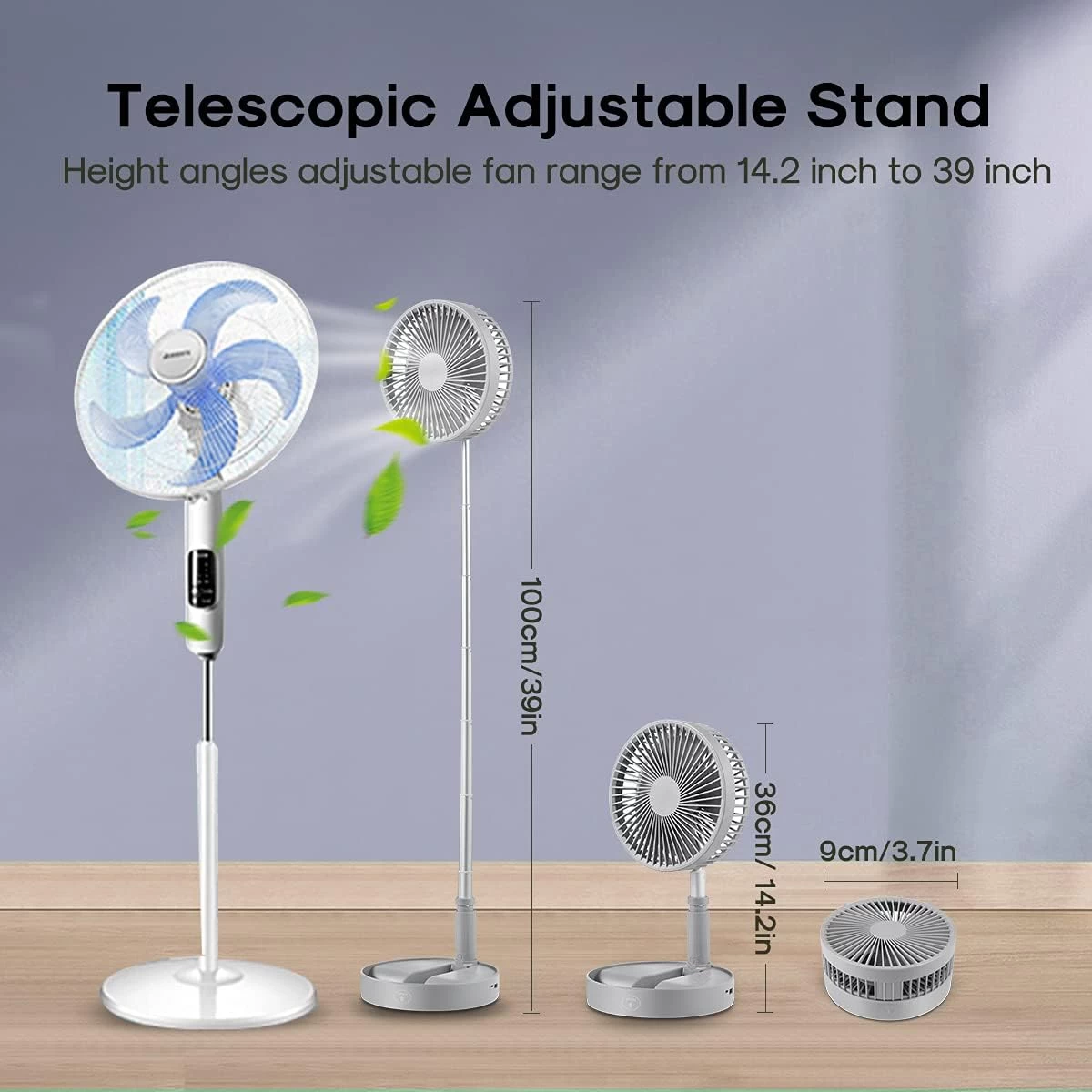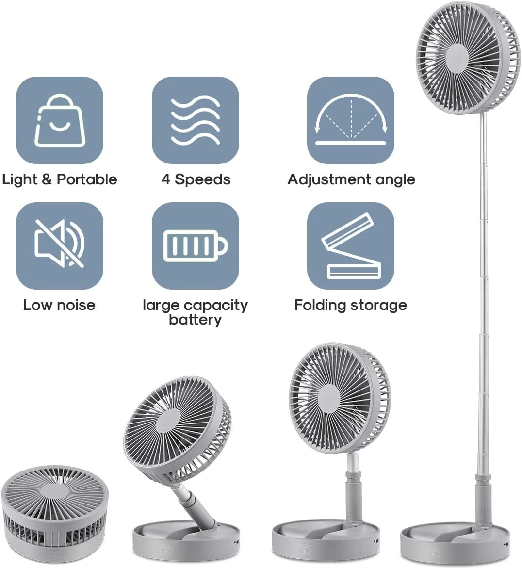 Transforms from a desktop fan to a standing fan in seconds! Foldable, lightweight, and portable — perfect for both indoor and outdoor use.